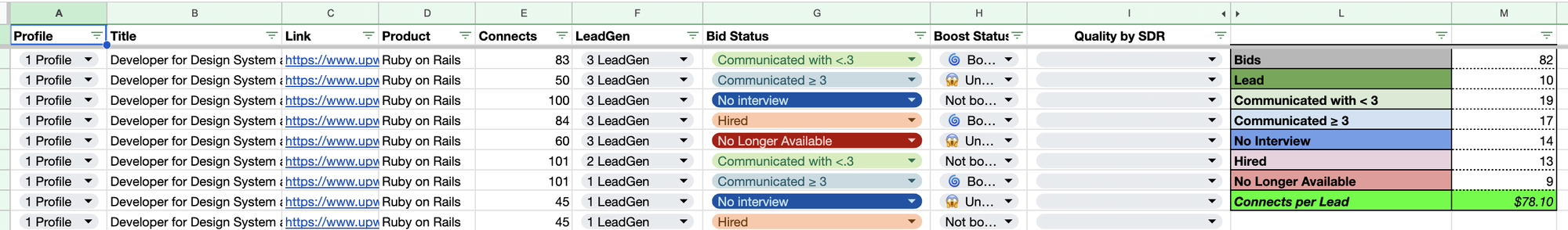 - If many bids have no replies, I call these jobs "empty"—meaning these leads are not real. If you have a lot of them, you need to figure out what they have in common to avoid wasting money on these “empty” leads in the future. They should have some patterns.