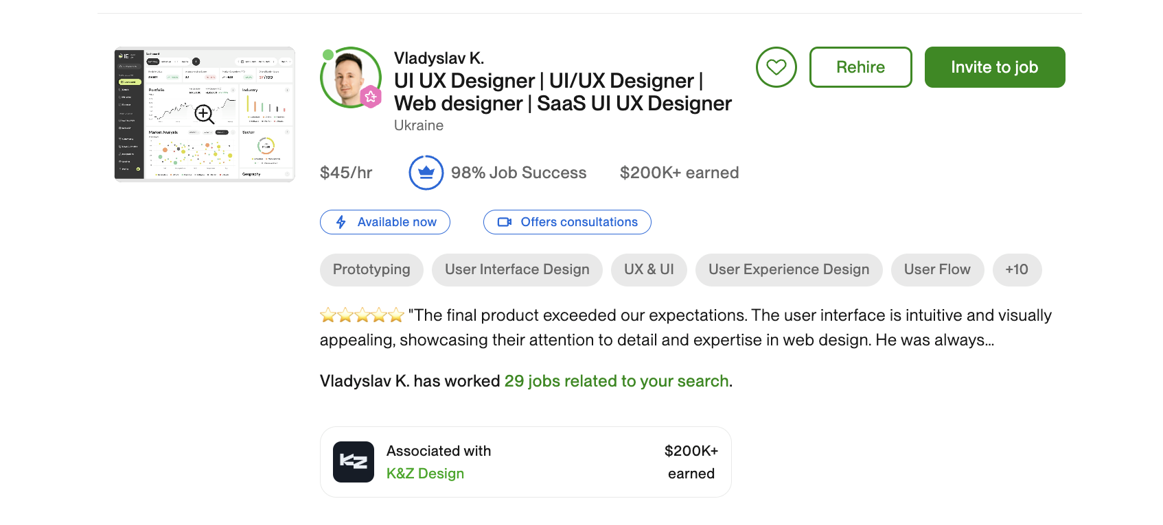 Vlad had not a bad Upwork profile but he was far far far away from any inbound invitations and direct messages.