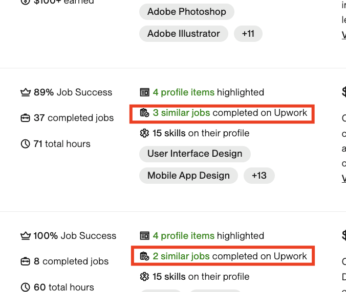 To match with future opportunities, your freelancer needs to have similar jobs to the job posted.