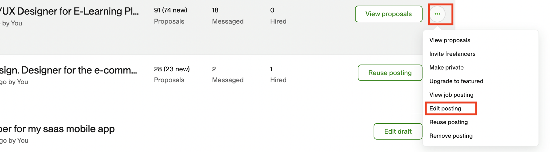 - Click on edit posting
