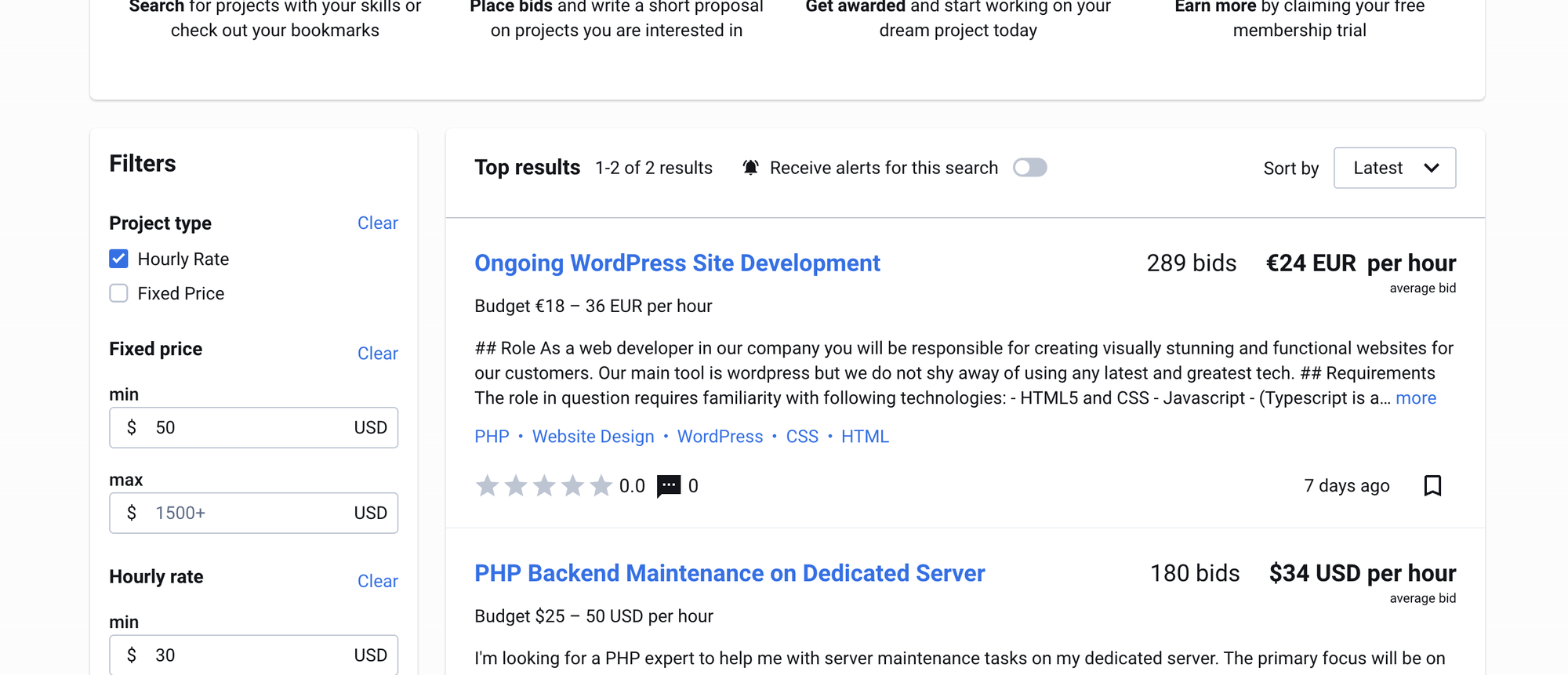 - Limited Categories: Primarily focuses on developers, designers, and finance experts. Moreover, they don't accept all devs, mostly CMS ones.