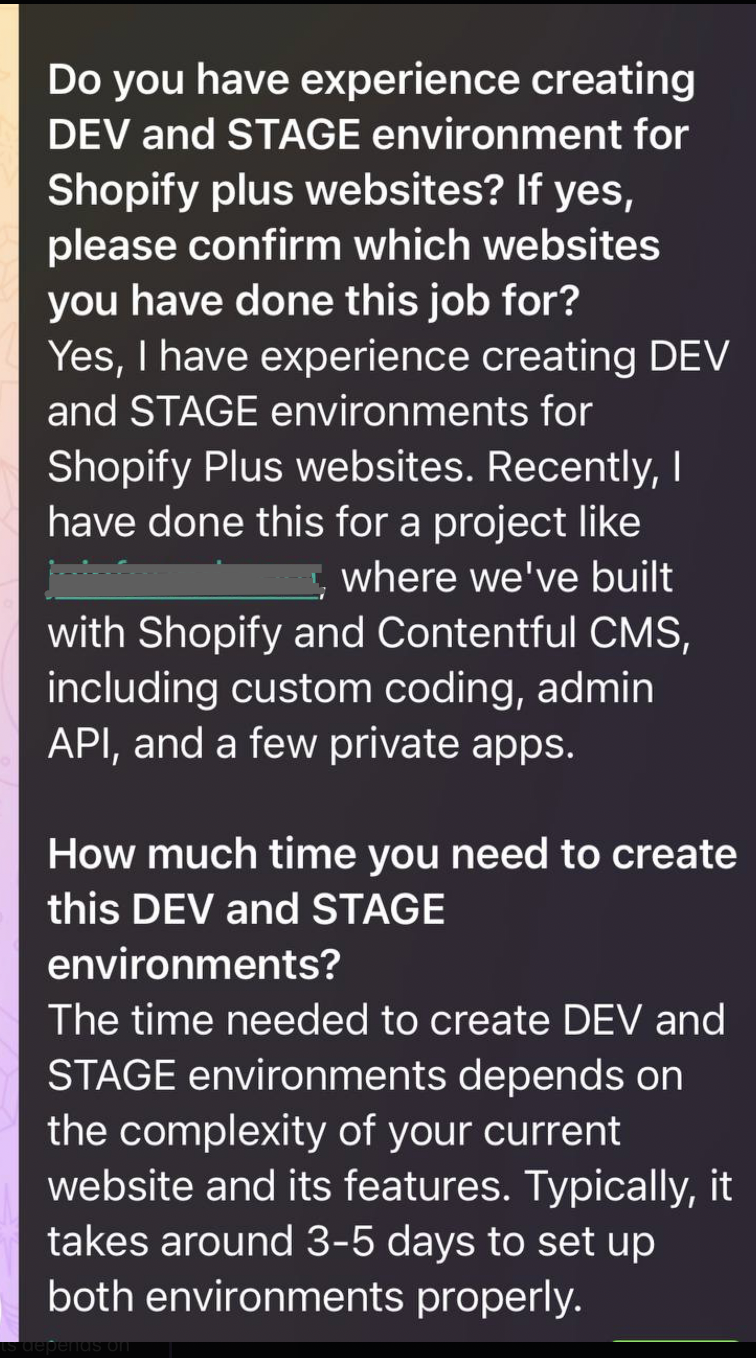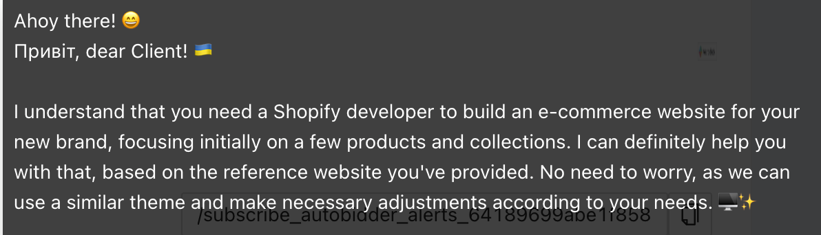 - [ Check the client's proposal for antibot's questions or words that you need to start with - start with it in a joking way or ignore this rule]