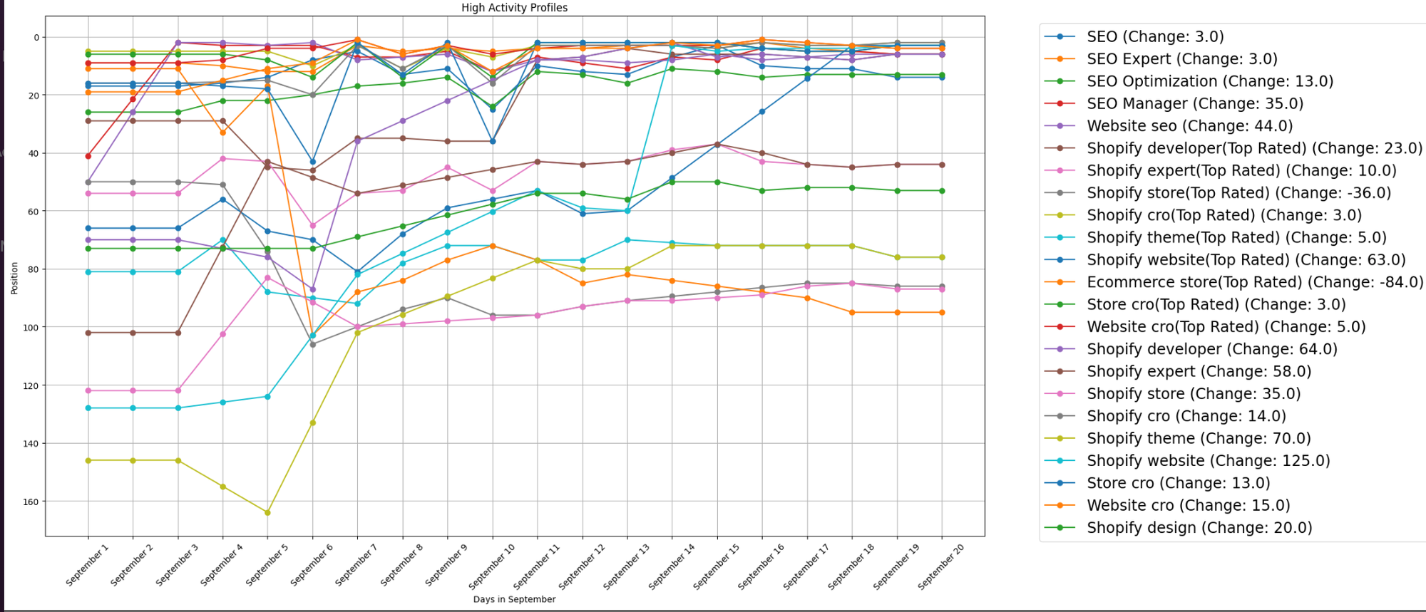 And my favorite one (thanks to Alex Koniukh) trend of Median Position Over the Month for all profiles