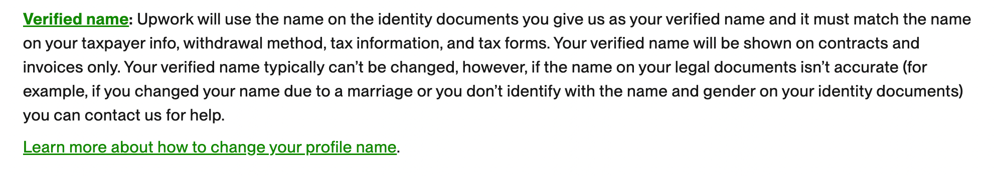 - Upwork doesn’t care about your wedding certificate alone. They care about matching identity. So first get that document! ID and bank statement should be for the new surname