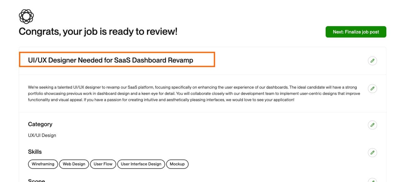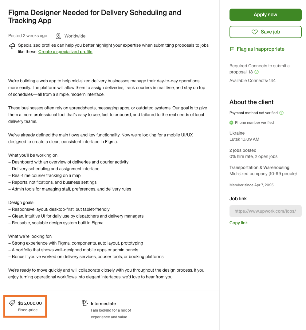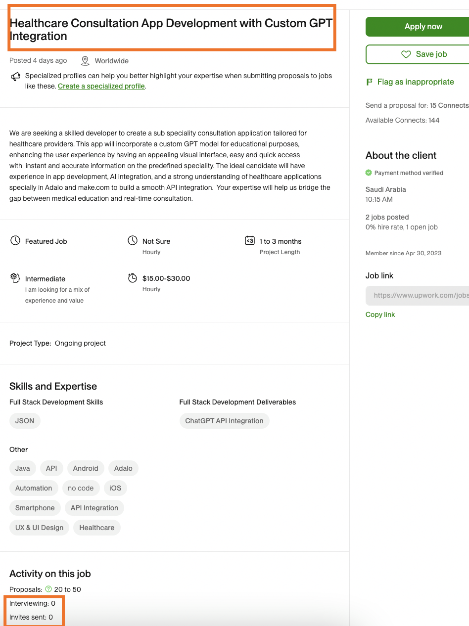 The client is using Upwork AI and hasn't added any specific details at all. 100% if the budget is placeholder.