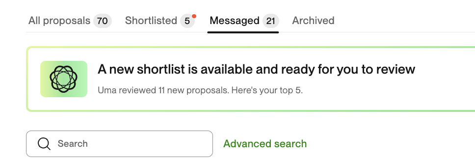 When UMA is inviting you, it's shown for a client as a bid.