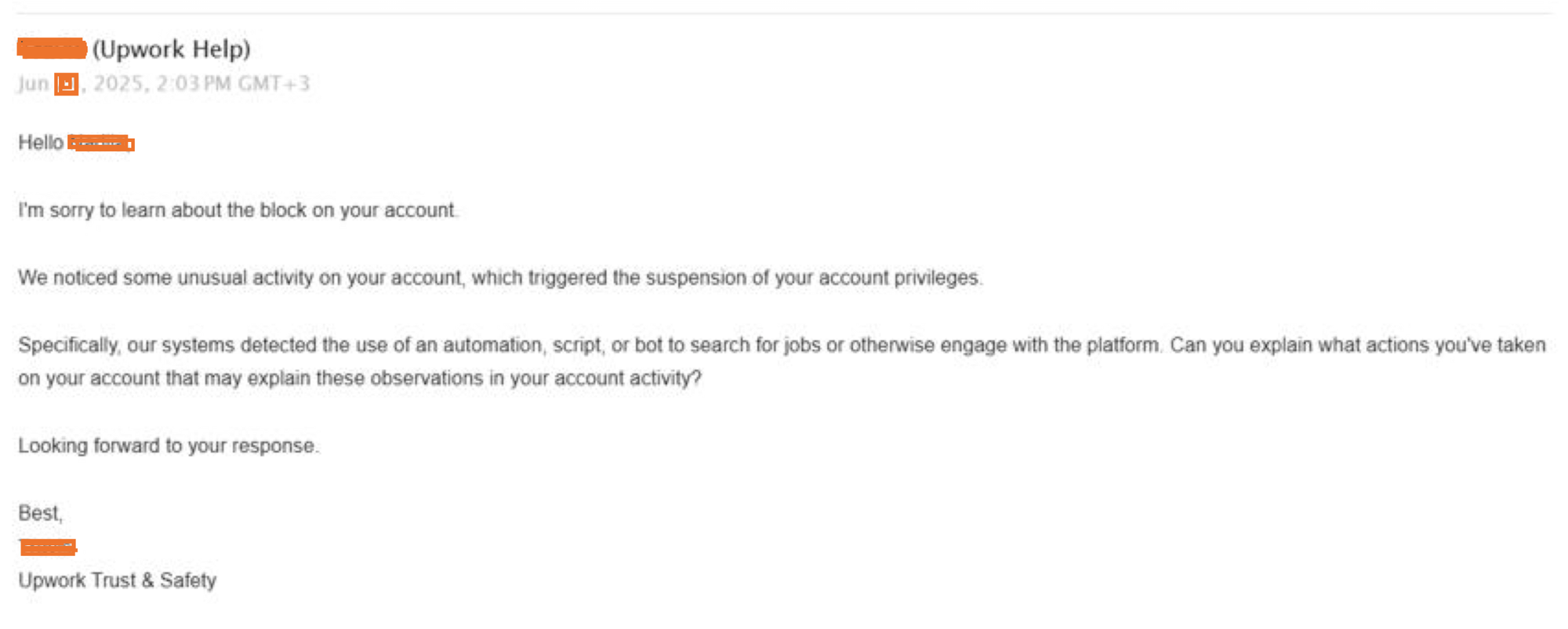 Upwork is very serious nowadays about breaking its rules, but 99% of guys who are coming to me are breaking them for real. And even with this, they are able to unban themselves.