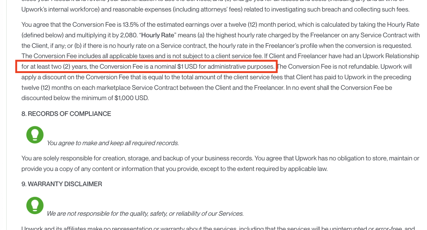 Did you know that it could cost $1 to go legally outside the Upwork?