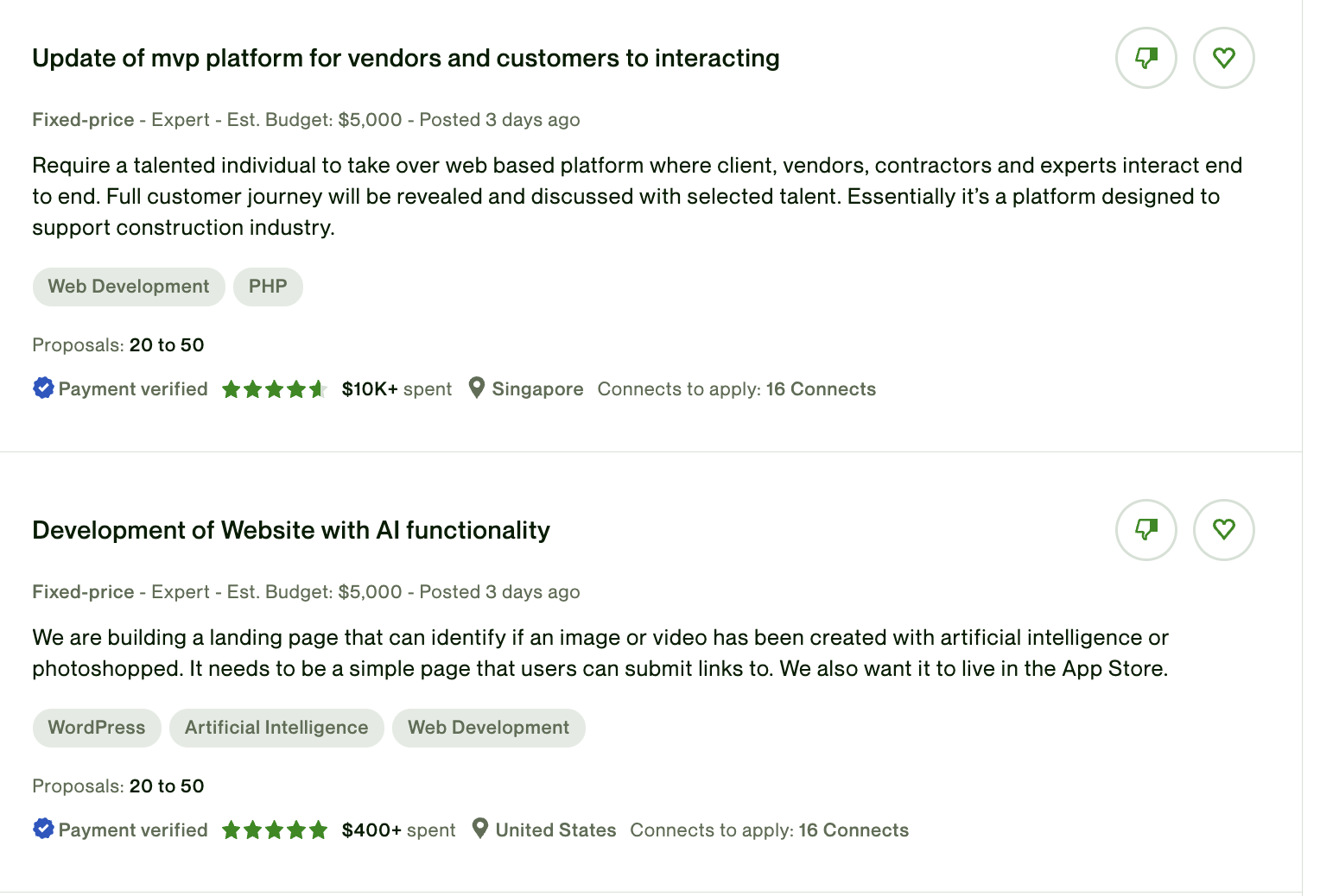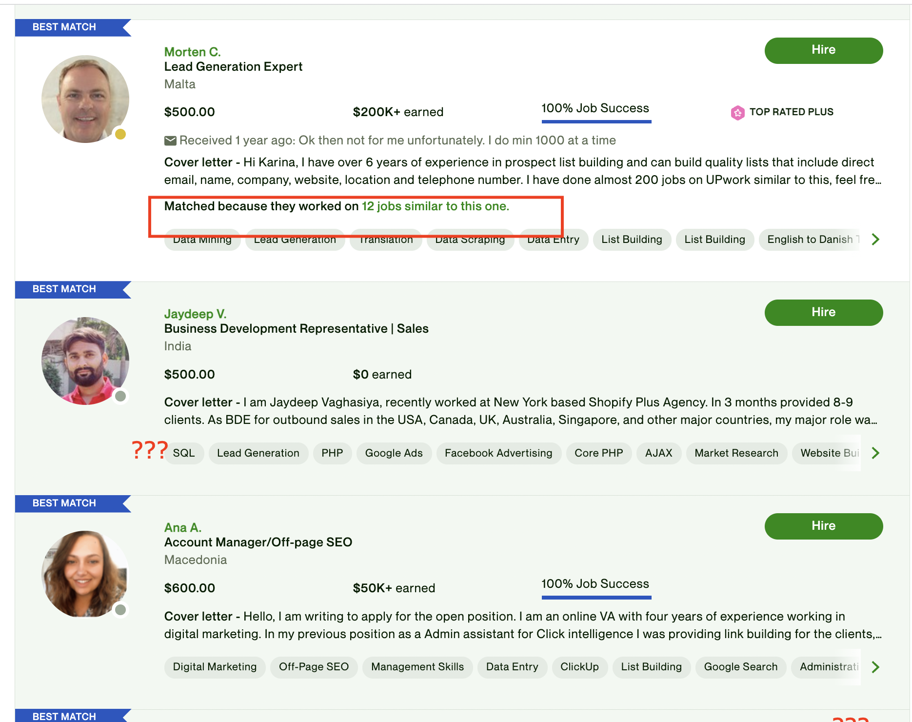 Most people didn't see how clients see the bids. Here is an example. Should be matched with jobs but instead - it's a mess. See the screenshot below. Mind the date I am writing the article as Upwork is a live organism that changes every day.