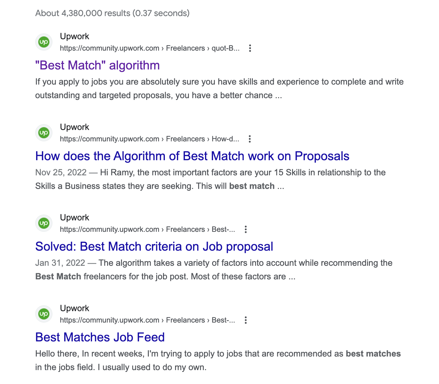 - Upwork current algorithm