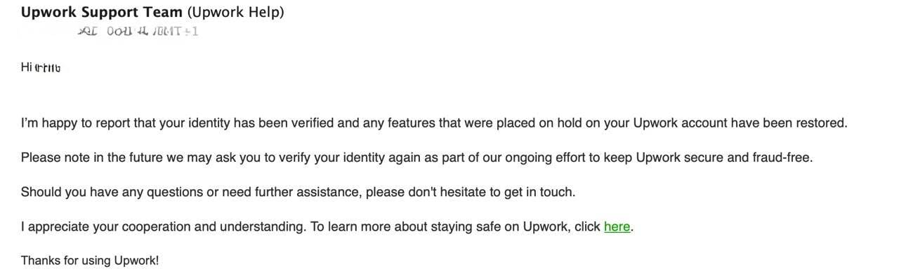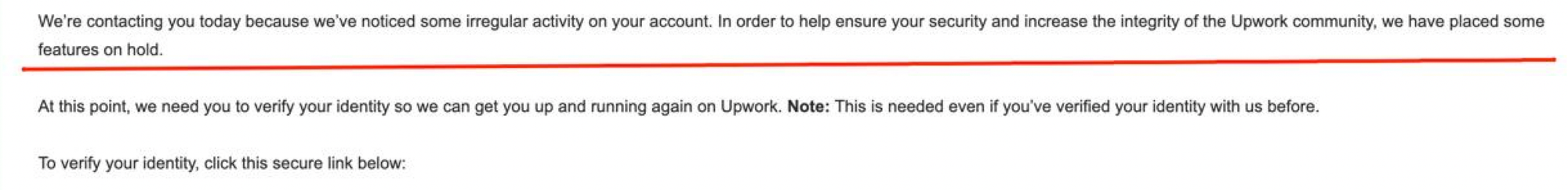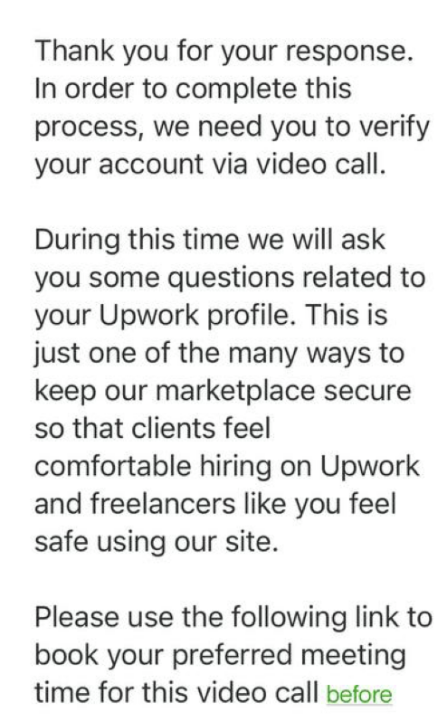My client Mr. M (I am making sure he will be anonymous) has received an email from the Upwork Trust and Safety team to verify his account.