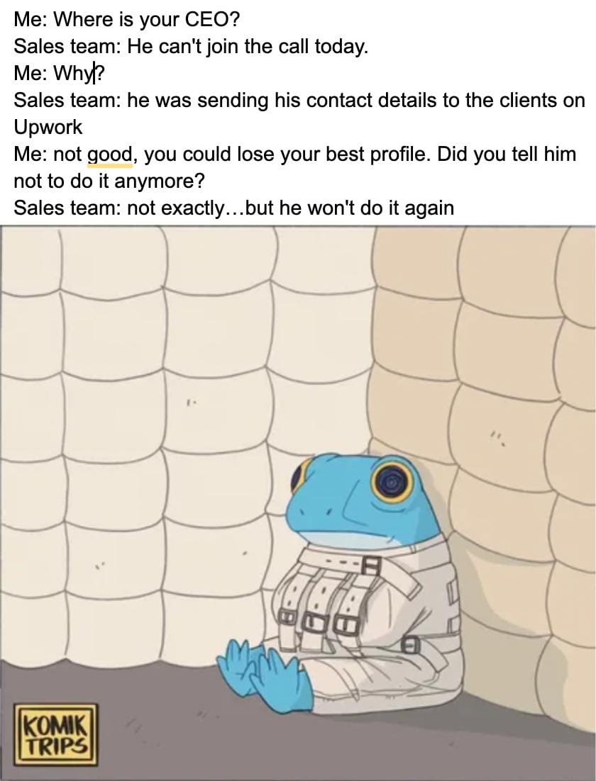 Upwork is almost calm for these 3 days so memes time!