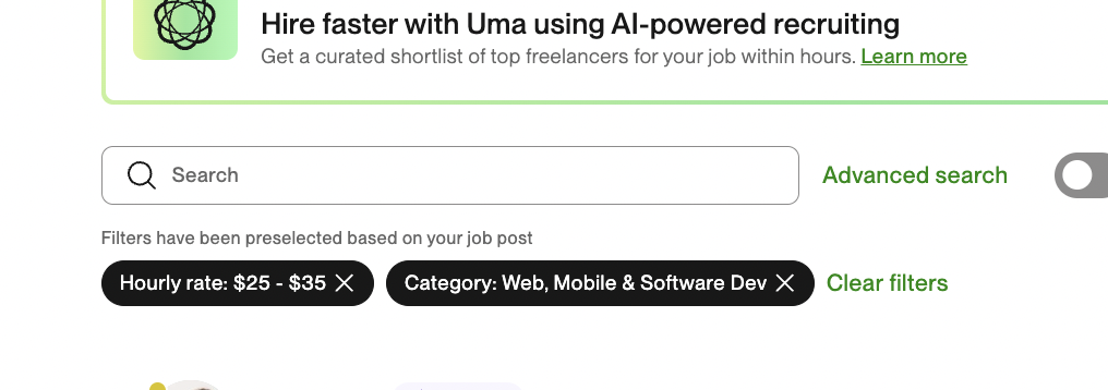 - Preselected filters in the second part of the job post so in case you are ot in the range, you won't be shown for the client.