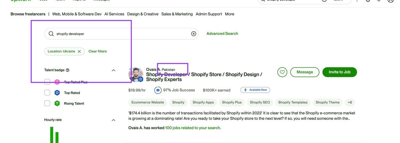 For example location: Ukraine but on the top was a dev from Pakistan